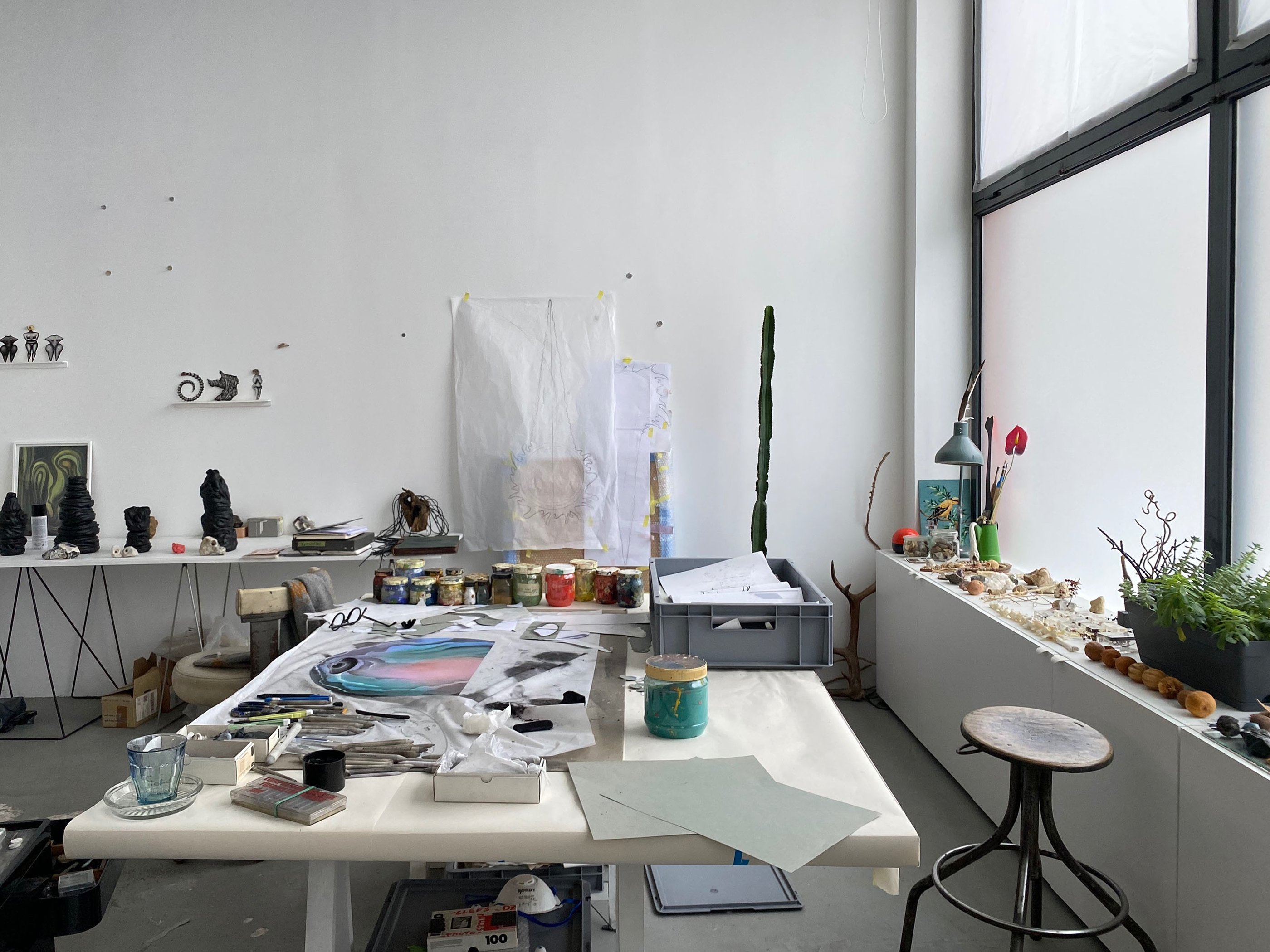 L’émerveillement face à des choses glanées au pouvoir de transfiguration sur lesquelles je pose mon regard (fossiles, os, scories, cailloux, végétaux…), fait partie intégrante de mon processus créatif que je me plaît à rattacher à la pratique de chasseuse-(re)cueilleuse. L’idée de métamorphose se déploie d’ailleurs dans toutes mes pratiques et de façon diverse : disparition des lieux et des corps, évolution du vivant, altération, mondes invisibles et illusion… Le mystère de l’apparition de la vie sur Terre, les mythes, les civilisations disparues m’intéressent spécialement, je m’en inspire en partie pour créer des récits fragmentaires où l’on éprouve l’énigme, le grotesque, l’étrange, le rêve.