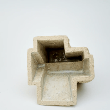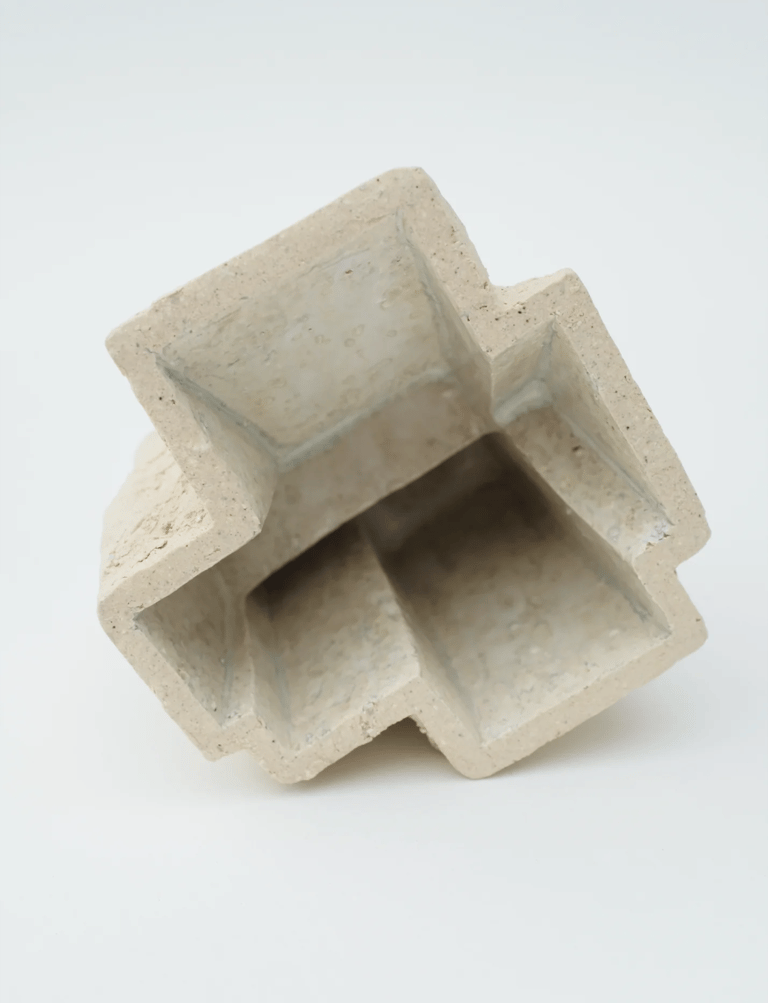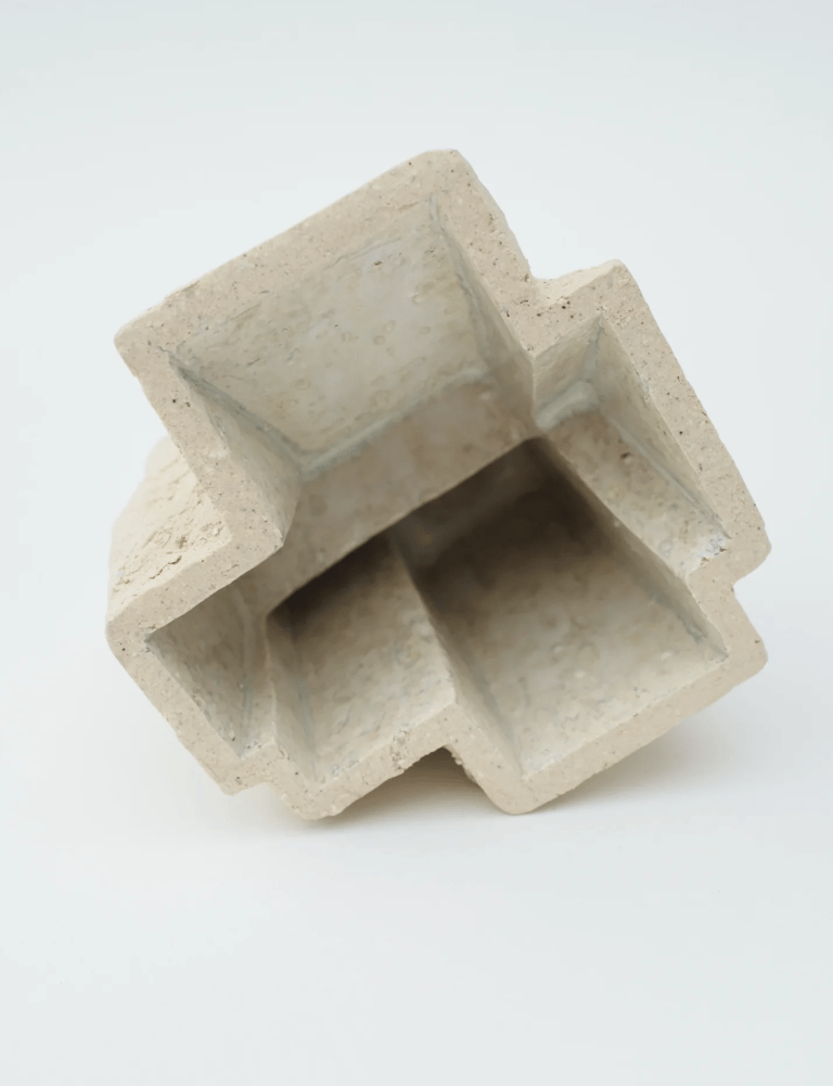 Modelage par estampage / grès chamotté blanc émail blanc irisé